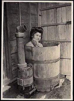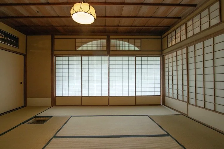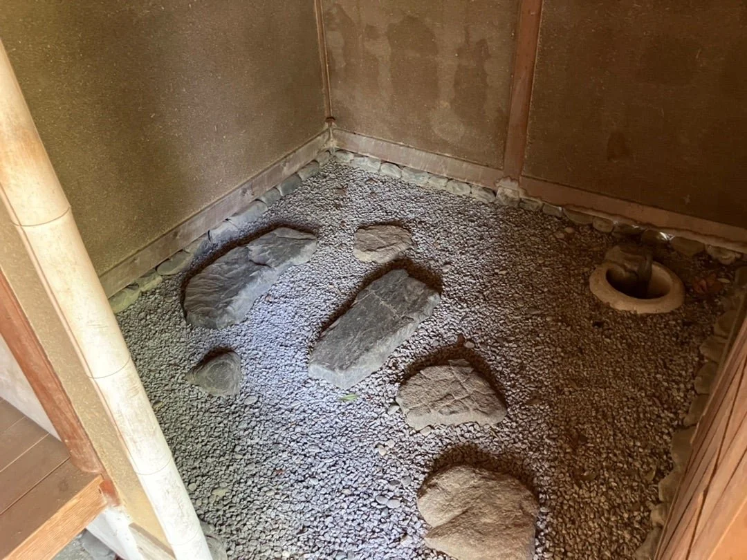The image below shows the house of a village headman in Shiojiri (塩尻), Nagano Prefecture. It also has a genkan-gamae, but this one features a papered shо̄ji moguri in the о̄-do-guchi. The moguri-do (潜り戸, lit. ‘diving door’ or ‘ducking door’) has three handles or ‘pulls’ (hikite 引手) whose use is not determined according to whether one is a man, woman, or child, but by one’s feudal class status: the upper pull is for the landlord class (jinushi kaikyū 地主階級), the middle for farmers who owned and worked their own land, called takamochi byakushо̄ (高持百姓, ‘high hold commoner’) or ji-sakunо̄ (自作農, lit. ‘self make farming’), and the lower for tenant farmers (ko-sakunо̄ 小作農, lit. ‘small make farming’), day labourers and the like, called mizunomi byakushо̄ (水呑み百姓, lit. ‘water drinking commoner’). The lowest pull is the dirtiest, indicating that it was the most used.