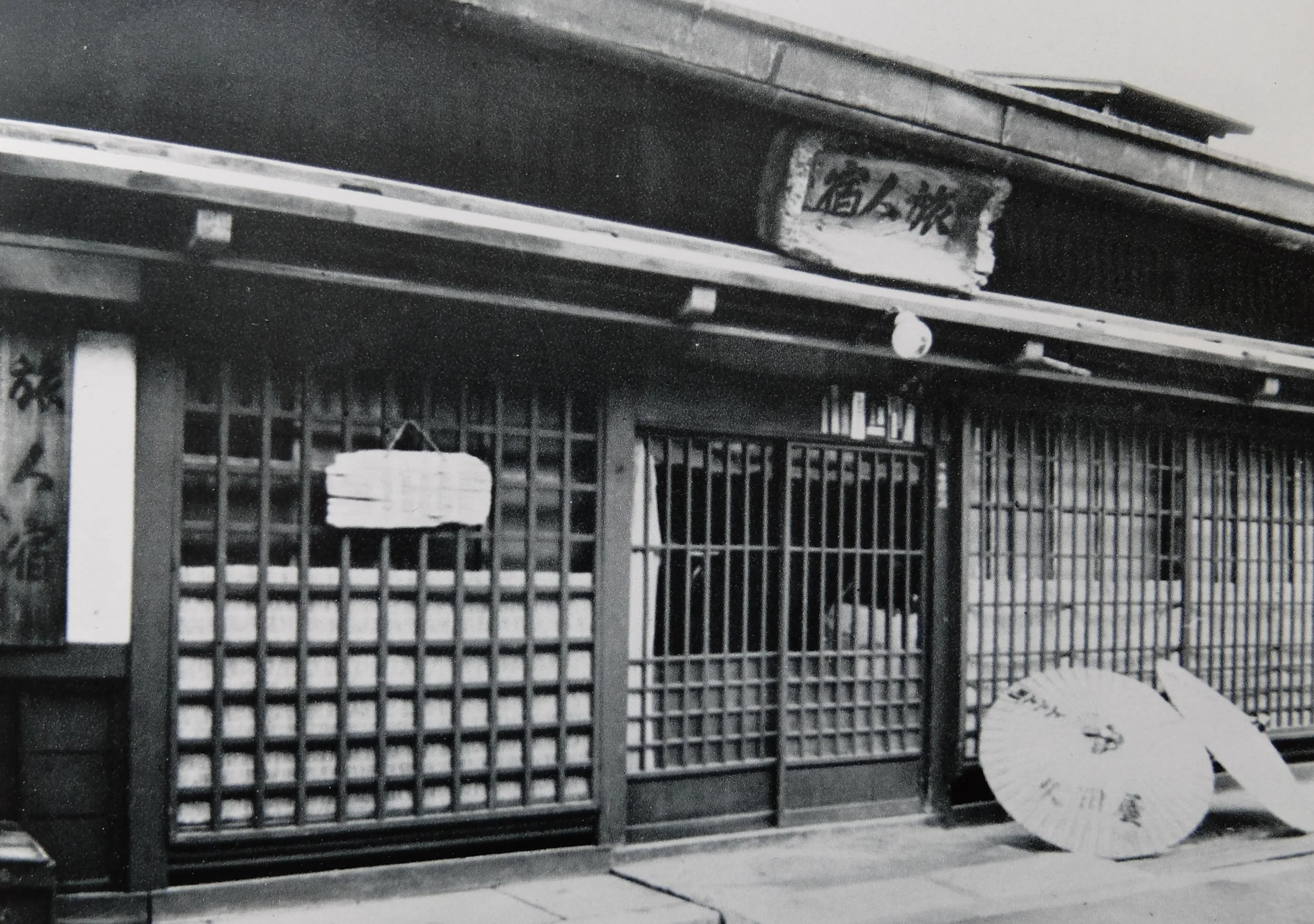 Lattice doors (kо̄shi-do 格子戸) fitted in the entry opening (to-guchi 戸口) of a typical townhouse (machiya 町家).