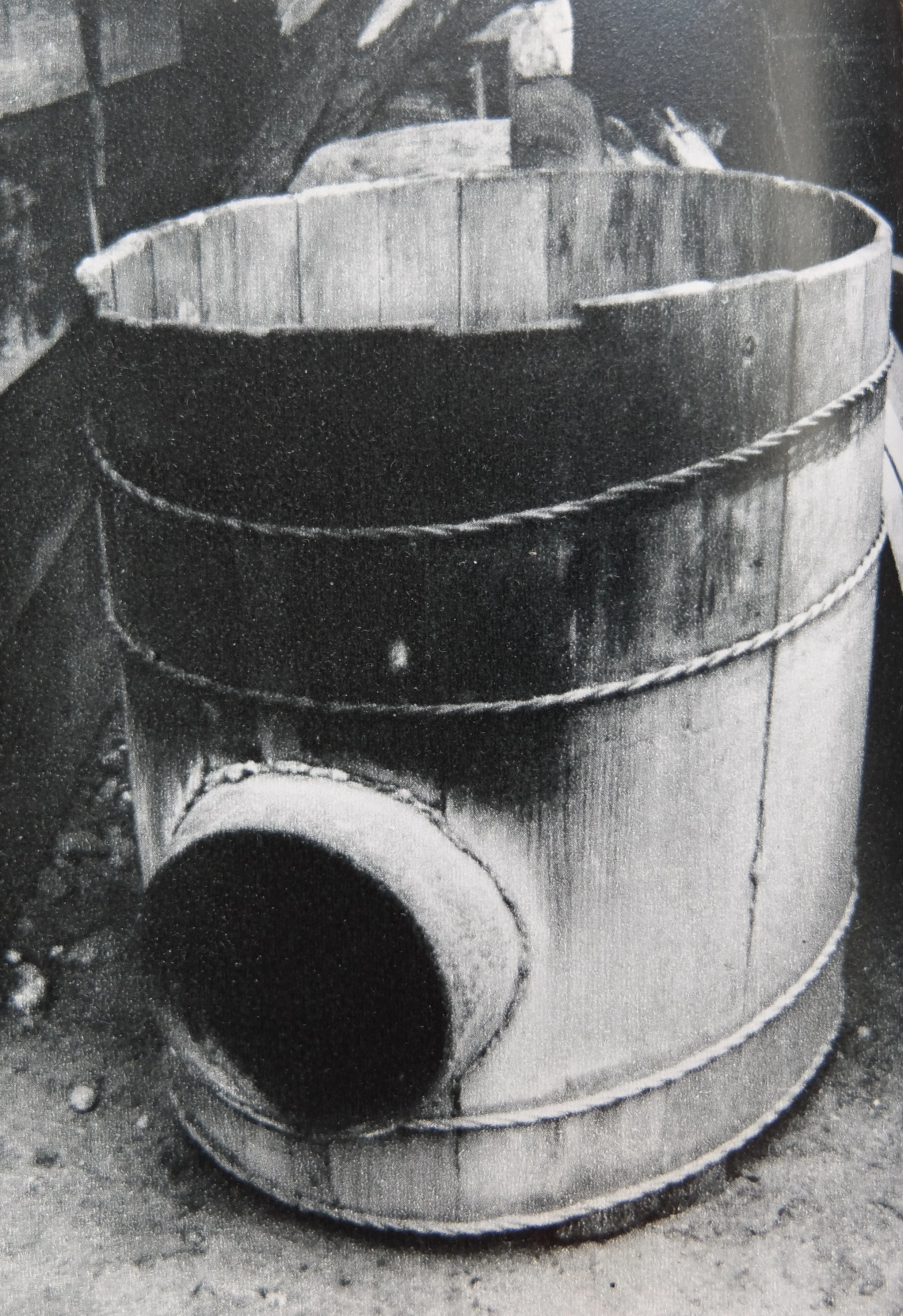 The о̄-do-guchi entry (大戸口, lit. ‘big door mouth’), which corresponds to the everyday entry and exit, is a robust о̄-do (大戸 ‘big door’), usually sliding, of about one ken (1.81m) in width. Because these doors are heavy and inconvenient to open and close, they were left open during the day, when the entrance was covered with a light ‘high-waist shо̄ji’ (koshi-daka shо̄ji 腰高障子), a sliding door consisting of a boarded lower half and papered lattice upper half. For entry and exit at night when the о̄-do was drawn over the opening, there was the moguri (潜り, lit. ‘diver’), a ‘door within a door’ installed in part of the о̄-do. The image below shows such an arrangement: during the day, the two koshi-daka shо̄ji are drawn over the opening; at night they are drawn back, and the о̄-do is drawn. The unusually high sill on this moguri, requiring one to ‘straddle enter’ (mataide-hairu 跨いで入る), is an old style, intended to discourage uninvited intrusion. Additionally, around the mid rail of the moguri, on the о̄-do side, there is a kururu (くるる) locking mechanism consisting of a small top-hung block and latch that prevents the moguri door from being opened. The horizontal battens on the left, attached to the face of the wall flanking the entrance (to-guchi 戸口), form a ‘scratch climb’ (kaki-nobori 掻き上り) ladder (hashigo 梯子) that leads to the servants’ room (shiyou-jin shitsu 使用人室) above the shimo-mise (しもみせ ‘lower shop’) that lies beyond the wall and door at the far left of the image.