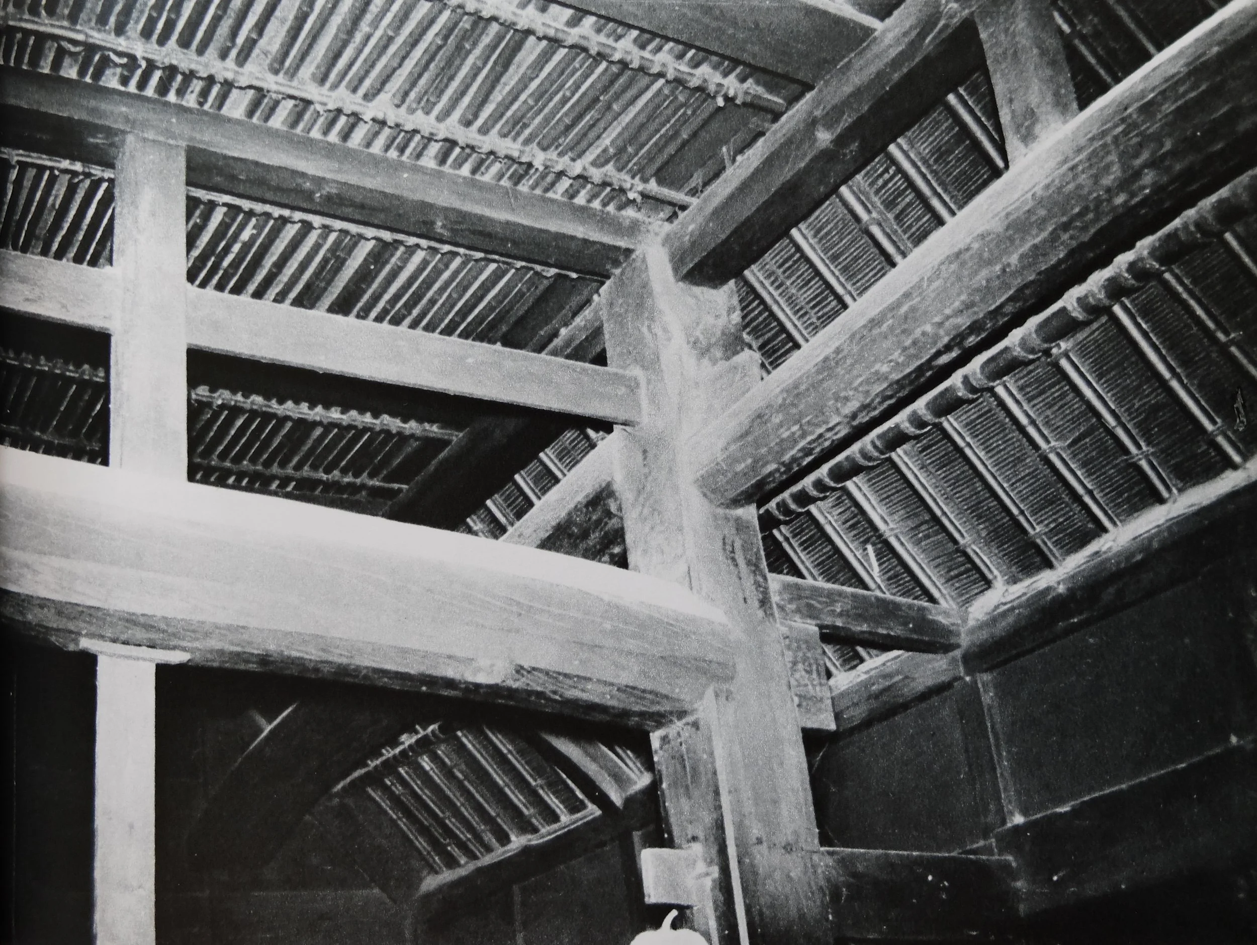 An interior view of an о̄-do and its surrounds. The high-placed moguri is an old style. Yoshimura family (Yoshimura-ke 吉村家) residence, an Important Cultural Property, О̄saka Prefecture.