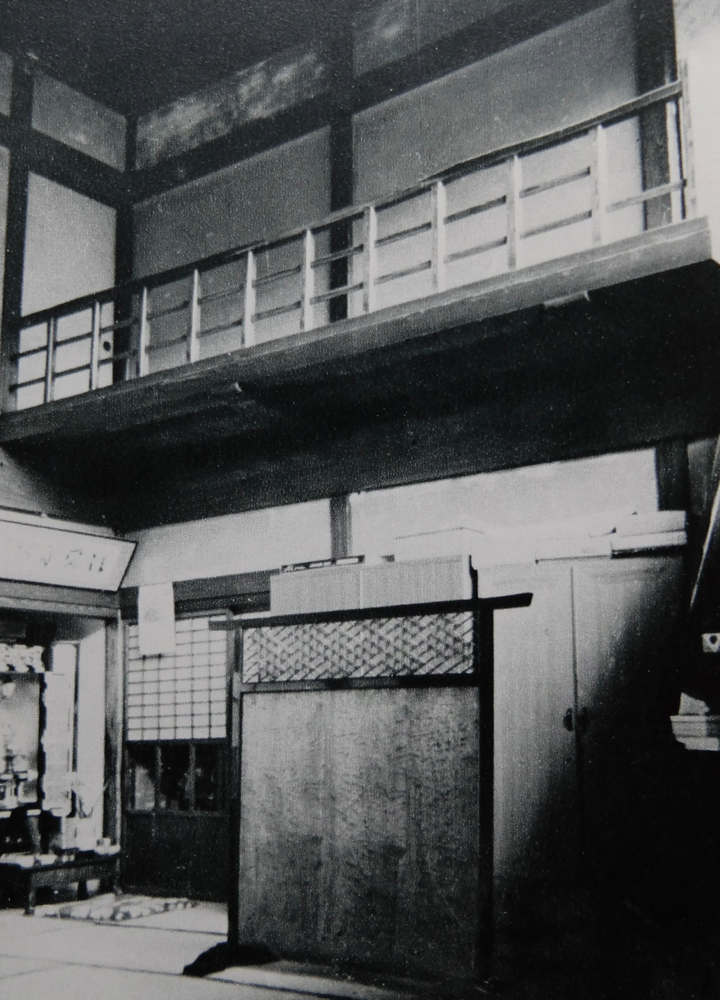 The ‘Y-form’ (wai-ji gata Y字型) stairs and upper gangway of the Shinmutsu Inn (Shinmutsu Ryokan 新むつ旅館) in Hachinohe City (Hachinohe-shi 八戸市), Aomori Prefecture, built in 1898, the 31st year of the Meiji period (Meiji san-jū ichi nen 明治31年).
