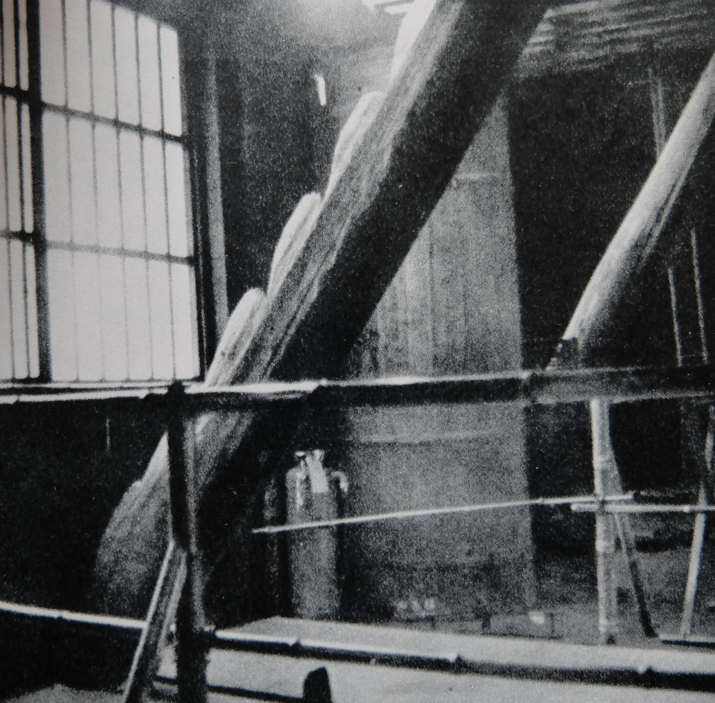 As a final example of ingenuity and efficiency in the stair design of minka, the image below shows footholds (ashi-gakari 足掛り) notched into the gable-end longitudinal bracing member (oi-sasu 追い叉首) of a roof, making the member serve double duty as a ‘one pole ladder’ (ippon-bashigo 一本梯子) to the silkworm-raising room (san-shitsu 蚕室) on the permeable bamboo floor (ama あま) above. More examples of ippon-bashigo will be presented in next week’s post on external stairs and steps associated with minka.