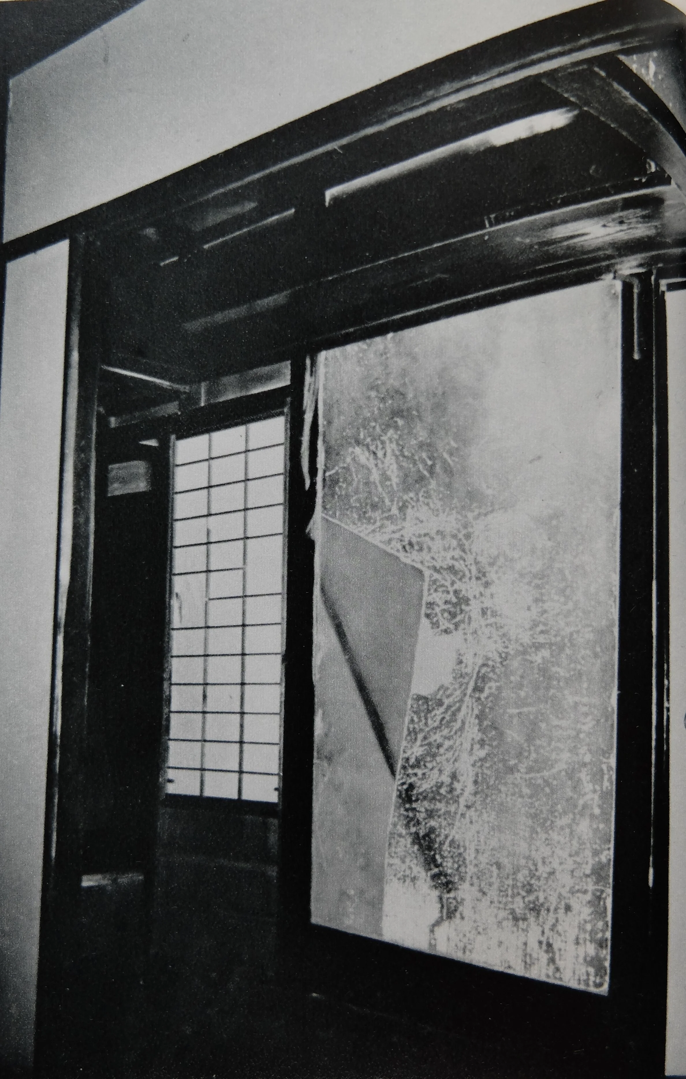 A horizontal sliding ‘door’ (to 戸) installed within the space above the ceiling, to close off the stair for security and peace of mind. Okamoto family (Okamoto-ke 岡本家) residence, Kyо̄to City.