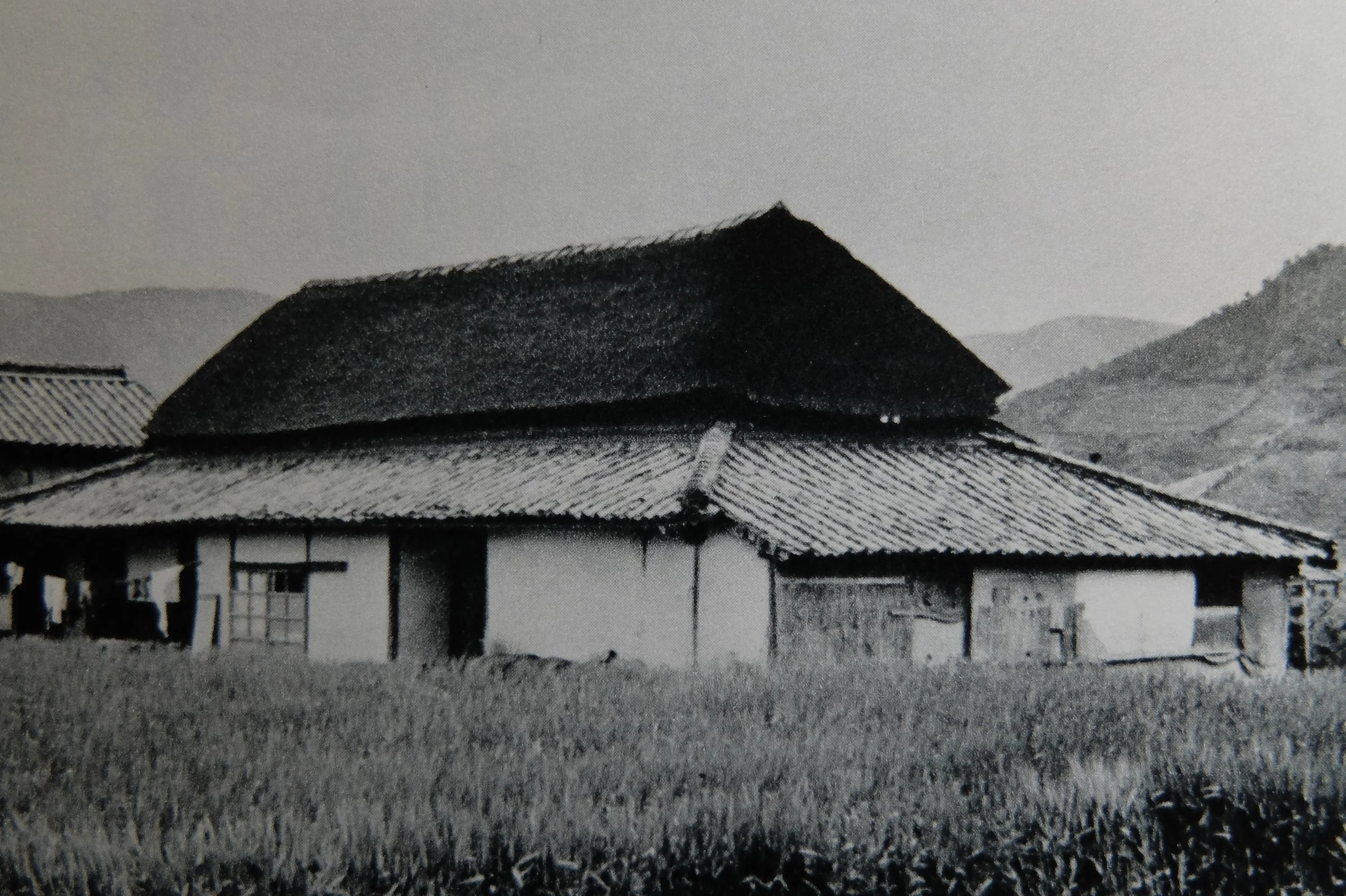 The shihо̄-buta-zukuri minka of Shikoku (四国) is a style in which the inner space (jо̄ya 上屋) of the main volume (omoya 主屋) of the dwelling has a thatched roof (kusa-yane 草屋根), while the roof over the outer, perimeter space (geya 下屋) is tiled (kawara-buki 瓦葺き) on all four sides. The practice of tiling the roof over the geya appeared from the middle of the Edo period (Edo-jidai 江戸時代, 1603 - 1868), and such roofs can be found all over the country, so are not particularly unusual. The Seto-nai region (Seto-nai chihо̄ 瀬戸内地方), however, is blessed with good quality clay that is ideal for roof tiles, and there are many tile-roofed and few thatched minka; it seems that because of this, the minka of this region in particular have come to be associated with the feature.